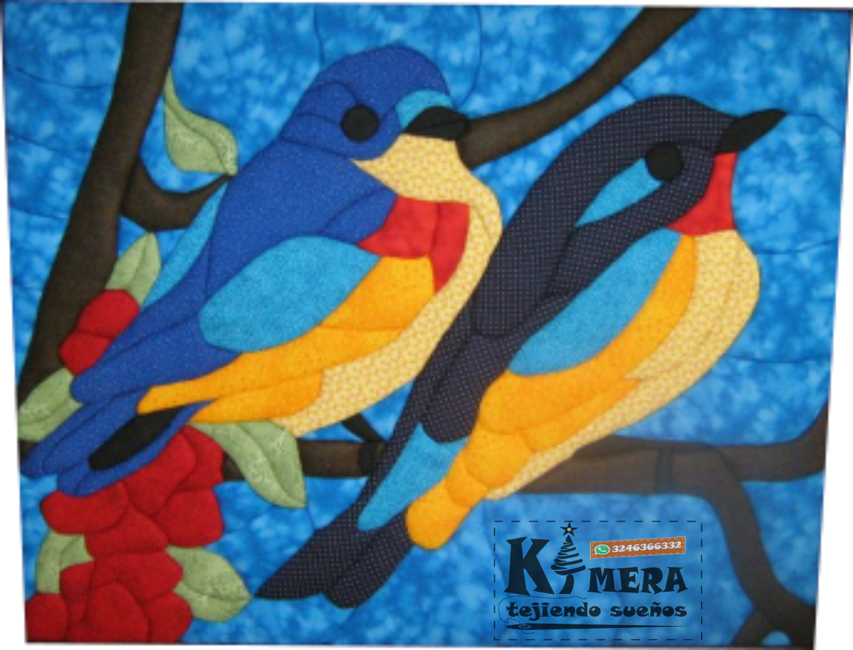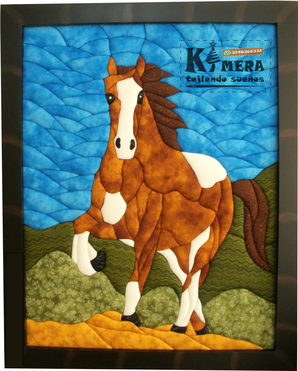 Cuadro decorativo en patchwork sin agujas con telas miniprint y marco en madera MDF.