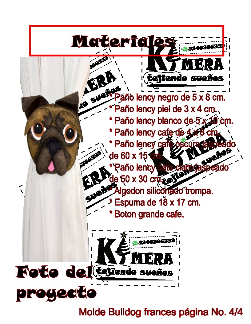 Molde Bulldog Frances, para elaborarlo en paño lency, viene en dos tamaños, cortinero y llavero o prendedor.