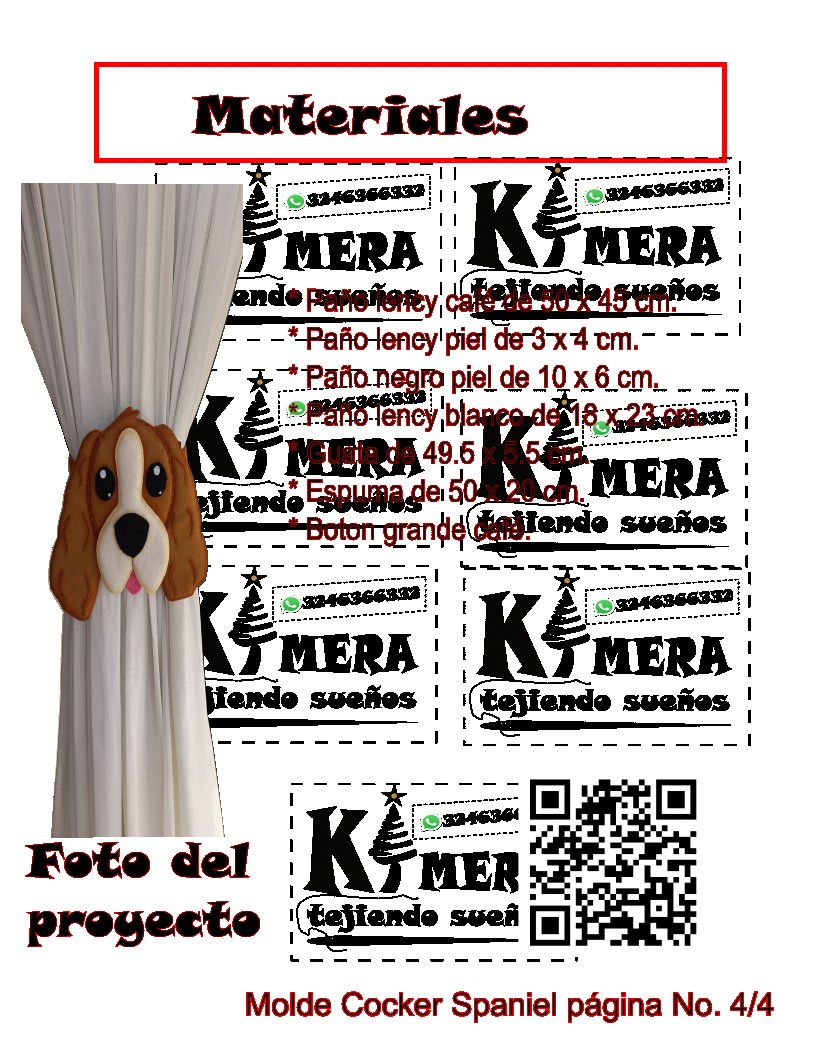 Molde Cocker Spaniel, para elaborarlo en paño lency, viene en dos tamaños, cortinero y llavero o prendedor.