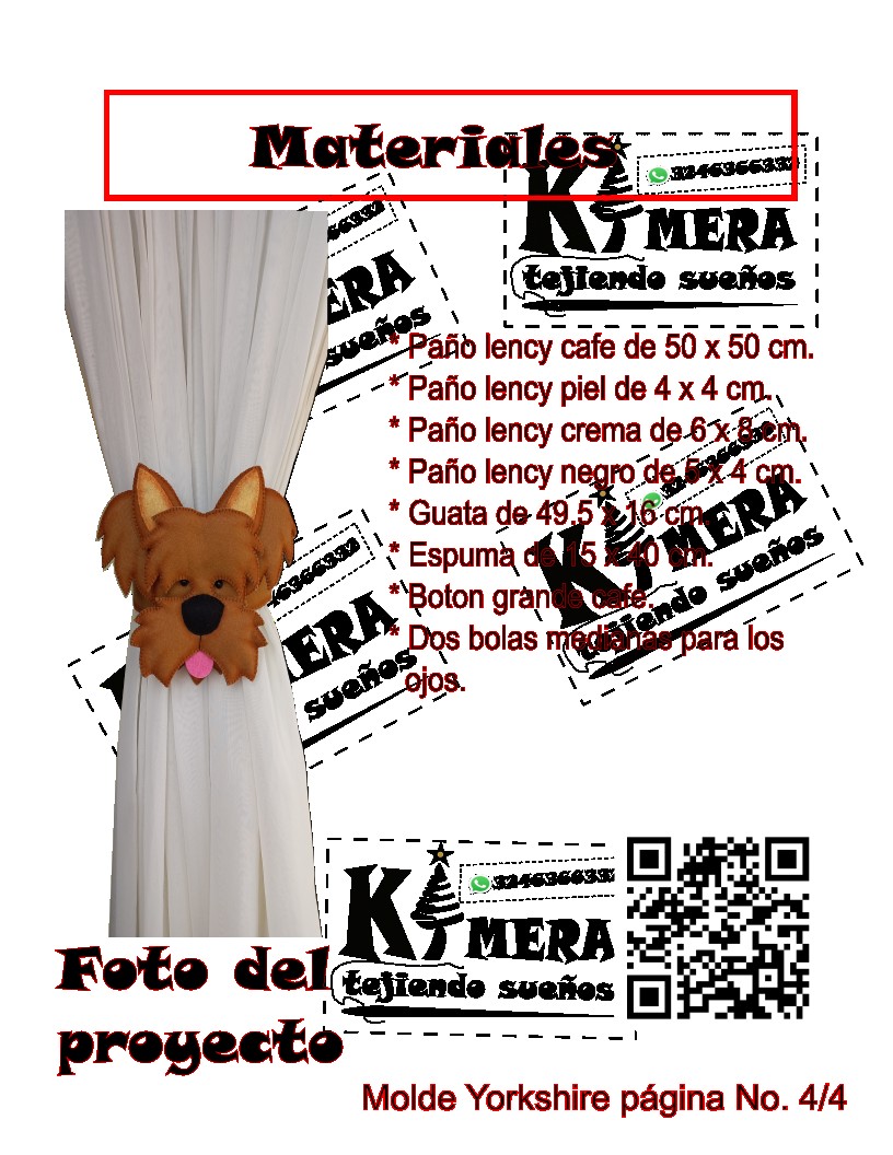 Molde Yorkshire, para elaborarlo en paño lency, viene en dos tamaños, cortinero y llavero o prendedor.